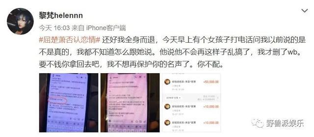 屈楚萧原本的如意算盘是他否认了,而女方沉默,这事情晒一天就过去了。可是没想到他前脚刚否认,女方就出来打脸,说自己刚刚被分手了。