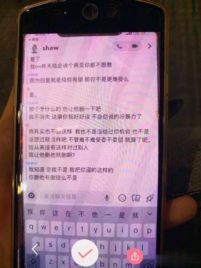 这是爆料人发的和男方聊天记录,男方一直在劝说删微博。