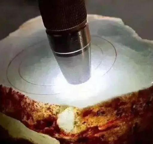 强灯照射下通透力非常强,贯穿了整块原 石,水头十足,效果不用小编说,当然非常理想了。
